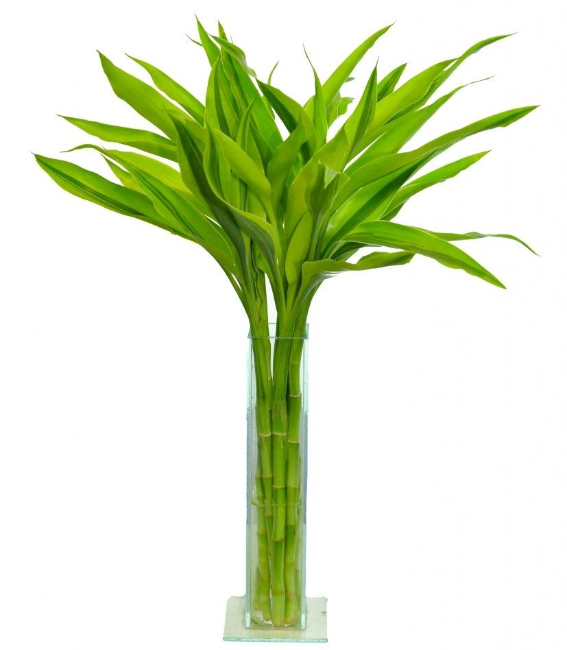 Arranjo elabora com 10 galhos de bambu da sorte no vidro,