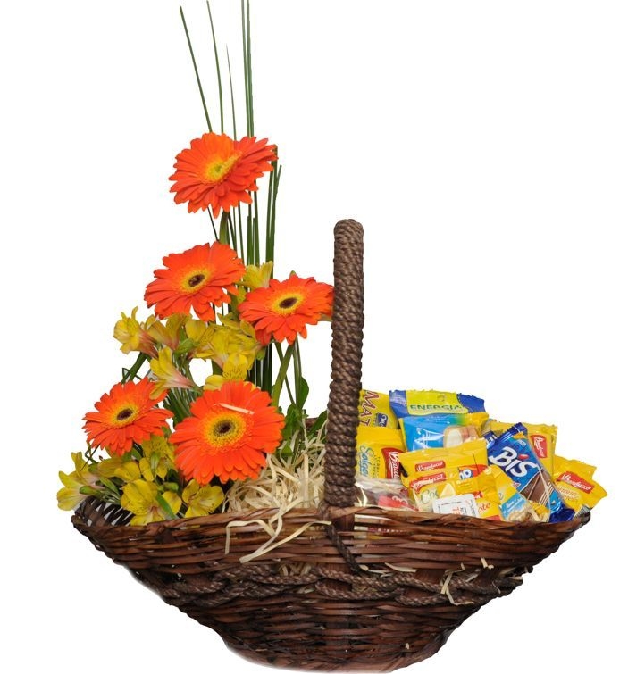 confeccionada em uma linda cesta de vime e preparada com uma seleção