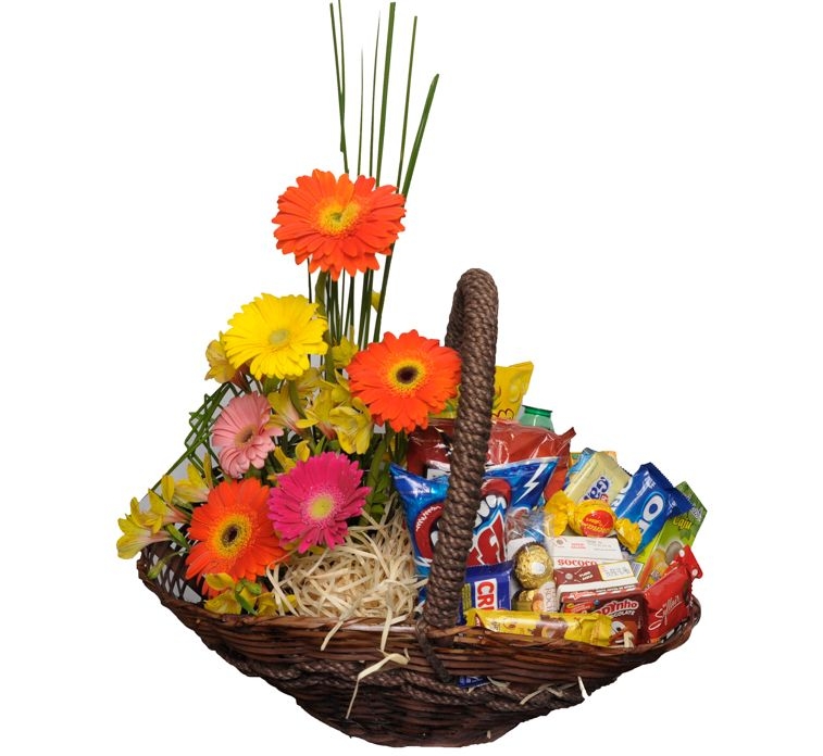 a cesta ficar ainda mais elegante sera acompanhado de um maravilhoso arranjo de gerberas ao lado.