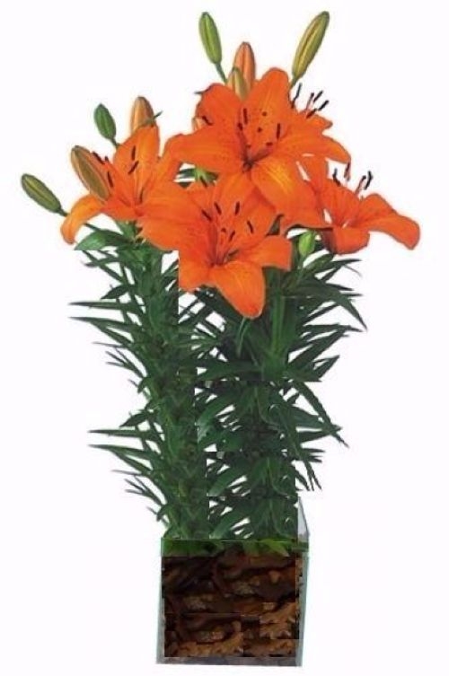 Lirio Laranja Plantado No Vidro