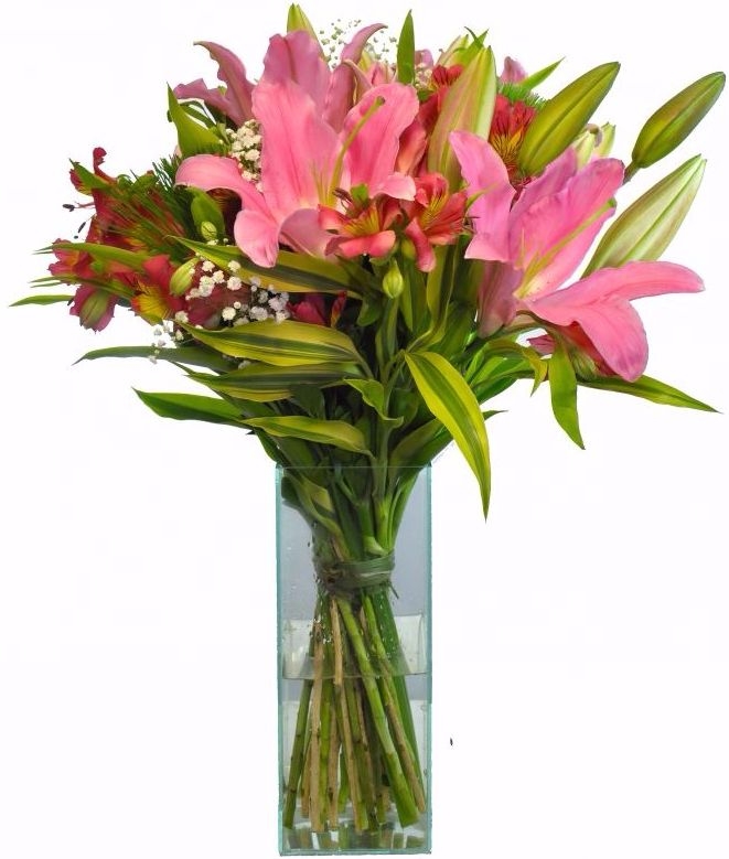Arranjo elaborado com 12 flores de lírios cor de rosa
