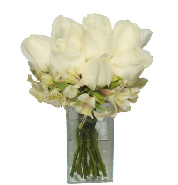 Lindo arranjinho de rosas nacionais na tonalidade branca.